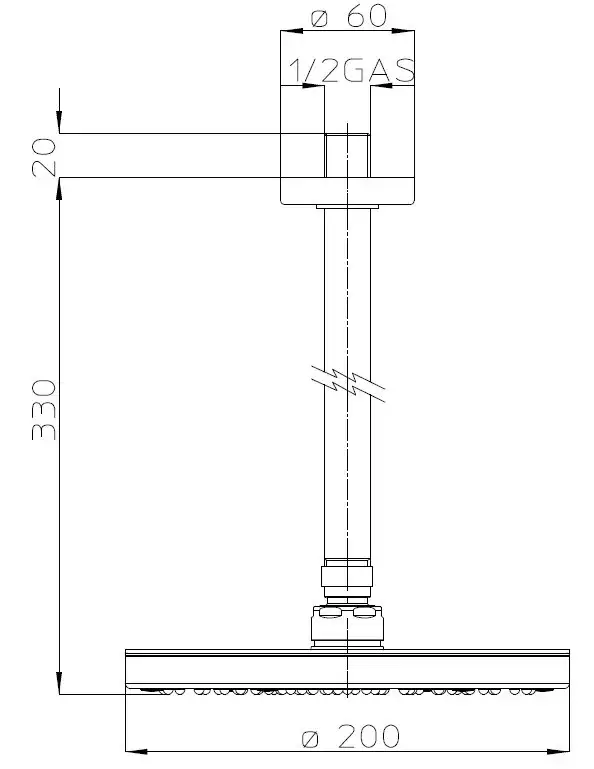 Bossini Oki Верхний душ d20 см, 1 вид струи, кронштейн потолочный 33 см, цвет: chrome H31405G.030