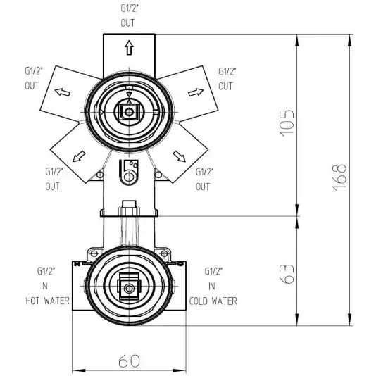 Bossini Oki Встраиваемая часть смесителя с девиатором, 1-5 потребителей Z00130