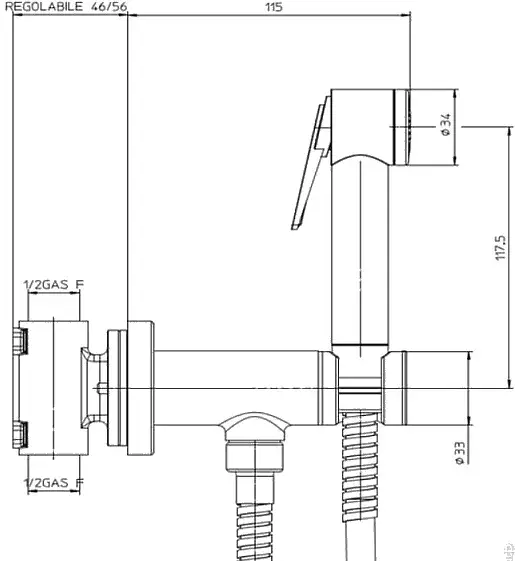 Bossini Paloma Flat Гигиенический душ с прогрессивным смесителем, шланг 125 см, цвет: mat black E37015B.073