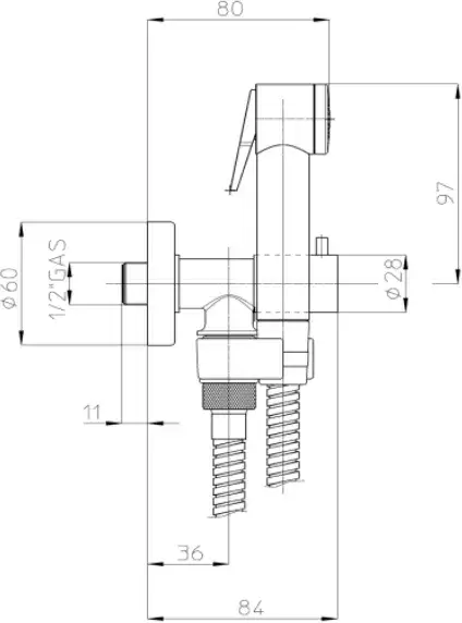 Bossini Paloma Гигиенический комплект: ручной душ 1 вид струи, держатель, шланг, цвет: chrome C69013B.030