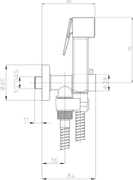 Bossini Paloma Гигиенический комплект: ручной душ 1 вид струи, держатель, шланг, цвет: chrome C69013B.030