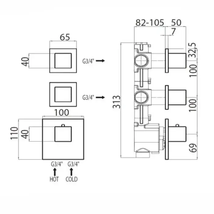 Bossini Rectangular Смеситель термостатический, встраиваемый, на 2-4 выхода, цвет: chrome Z033203.030