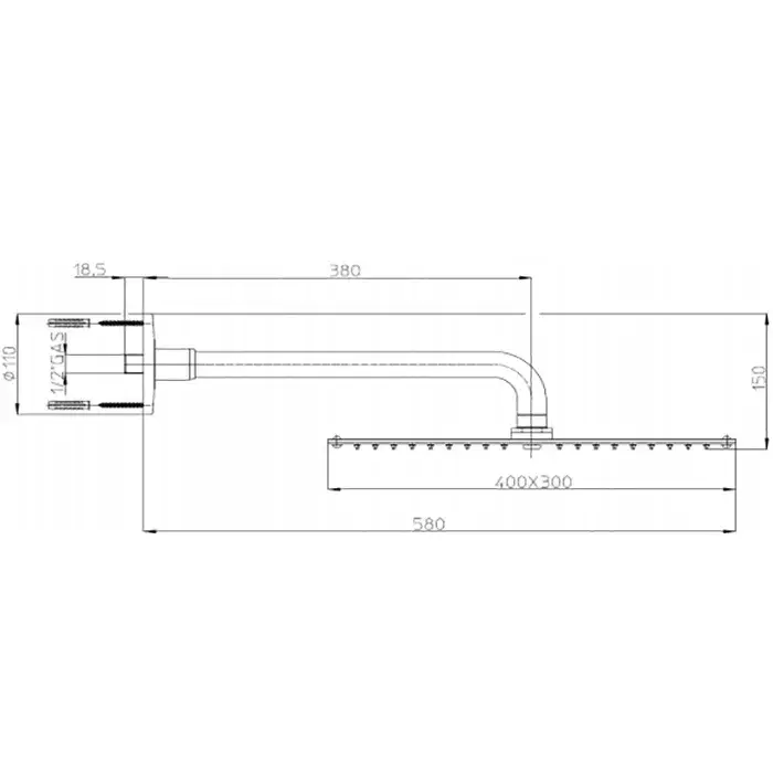 Bossini Rectangular Верхний душ 40 см, 1 вид струи, кронштейн настенный 38 см, цвет: chrome H77604.030