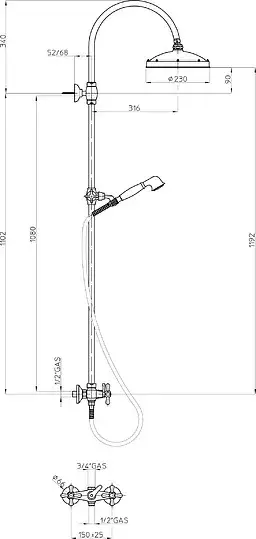 Bossini Retro Душевая стойка: смеситель, ручной и верхний душ, 1 вид струи, шланг, цвет: chrome L01526.030