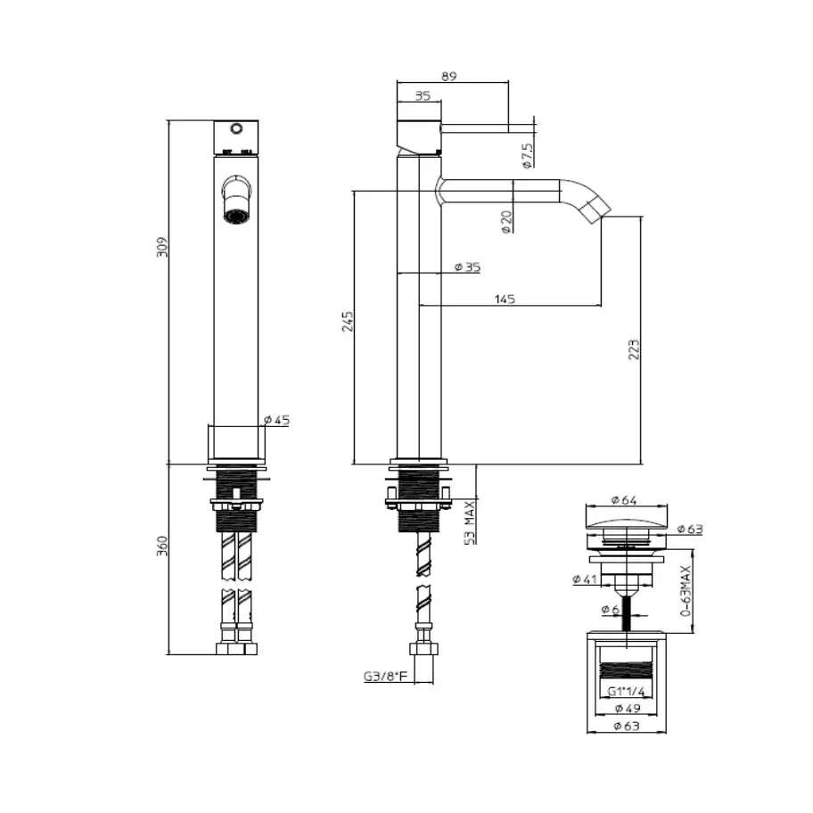 Bossini Teo Смеситель для раковины высокий, с донным клапаном, высота излива 22,3см, цвет: mat black Z00703.073