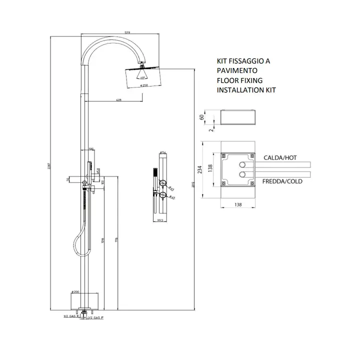 Bossini Tetis Душевая колонна напольная, 2 прогрессивных смесителя, руч. и верхний душ, цвет: chrome L00388.030
