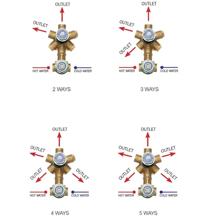 Bossini Встраиваемая часть термостата с запорным клапаном и девиатором, 5 потребителей Z030210000
