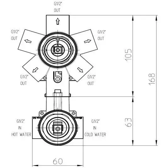 Bossini Встраиваемая часть с 2 запорными клапанами и девиаторами, 4 потребителя Z030271000