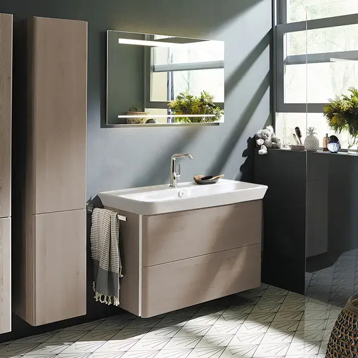 Burgbad Iveo База подвесная с керамическим умывальником с 1 отв под смес. 1000х492х721 мм.2 выдв ящика, сифон в компл. F2834 фланелевый дубовый