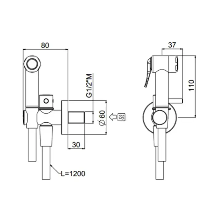 Carimali Flat Гигиенический душ с запорным вентилем и системой антипротечки, сменный фильтр, система без капель, шланг гладкий 120 см, хром