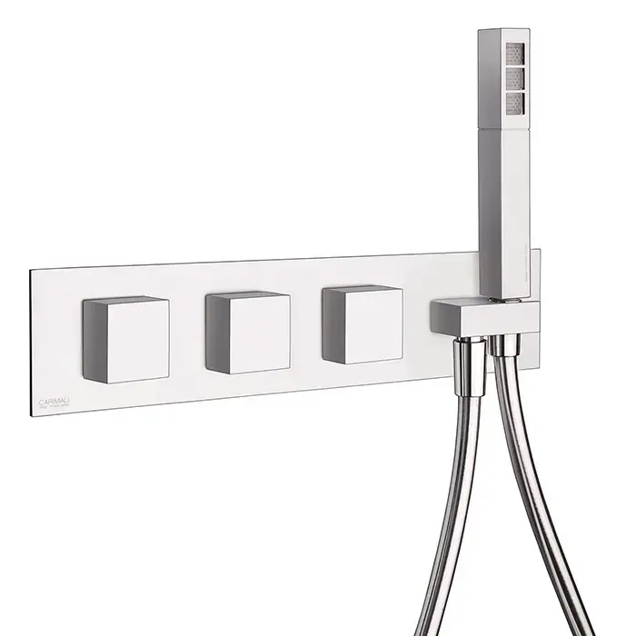 CARIMALI ILQUADRO Смеситель для душа встраиваемый, однорычажный, с переключателем на 4 потока, с ручным душем и шлангом, внешняя часть, цвет хром