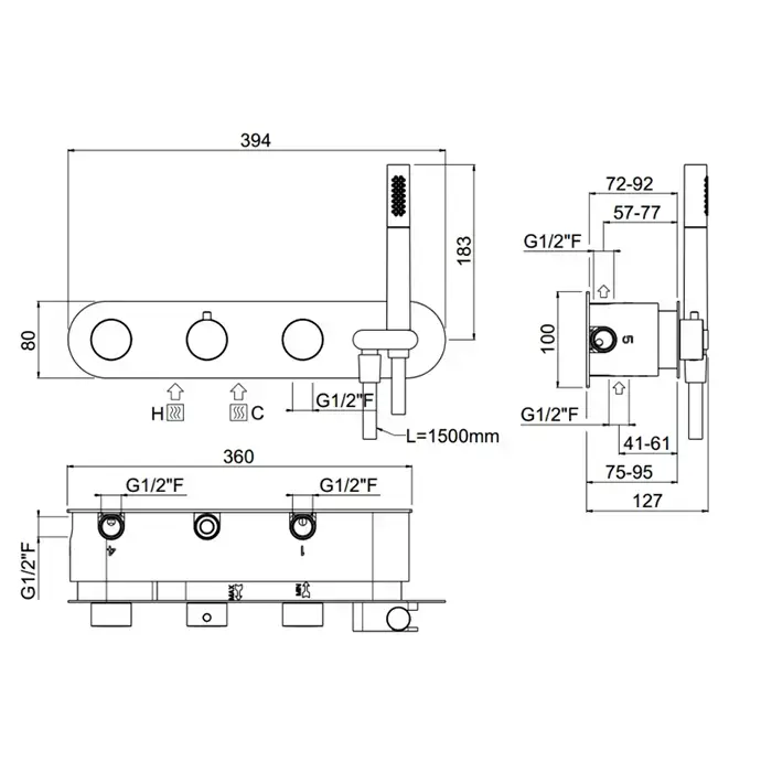Carimali ilTondo Смеситель для душа, встраиваемый, термостатический, c держателем для ручного душа, 3 выхода, гибкий шланг, цвет: хром