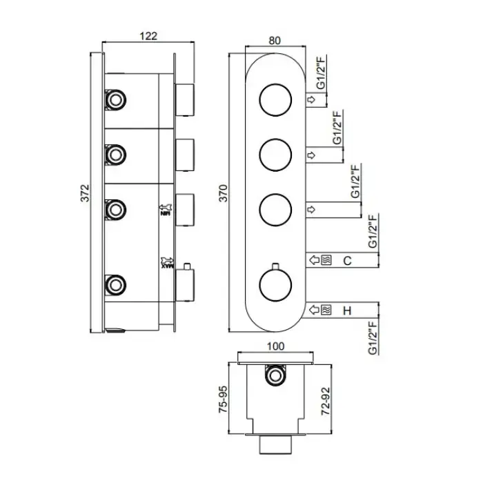 Carimali ILTONDO Внешняя часть вертикальная термостатического смесителя с 3 запорными вентилями,цвет хром