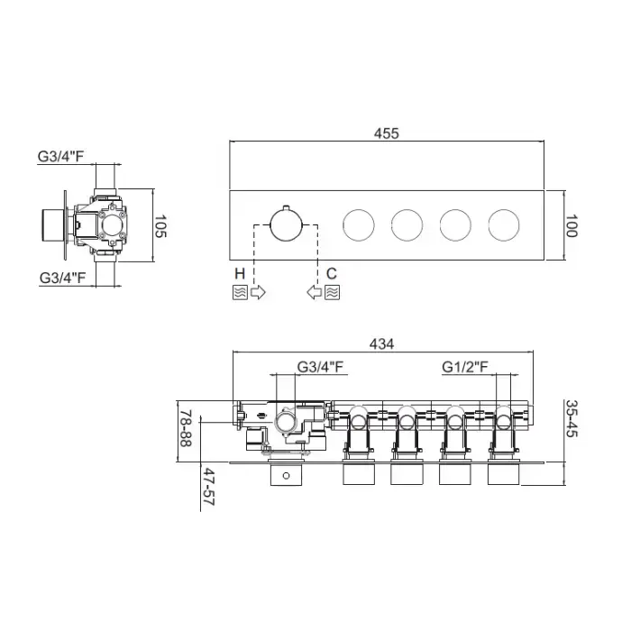 Carimali ilTondo Смеситель для душа, встраиваемый выхода, гибкий шланг, термостат c держателем для ручного душа, 6 выходов, цвет: хром