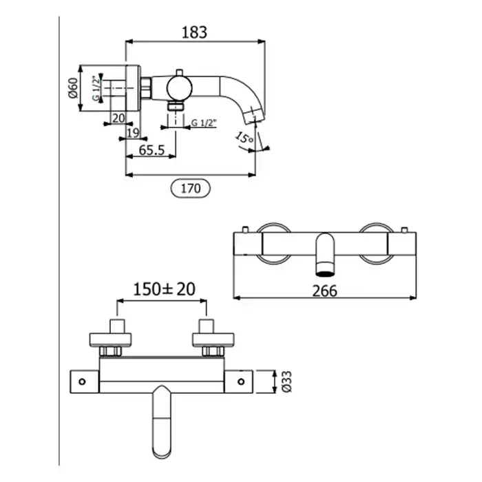 QuadroDesign Универсальная IN050 Встраиваемая часть смесителя термостатического из стены с 3-мя запорными вентилями