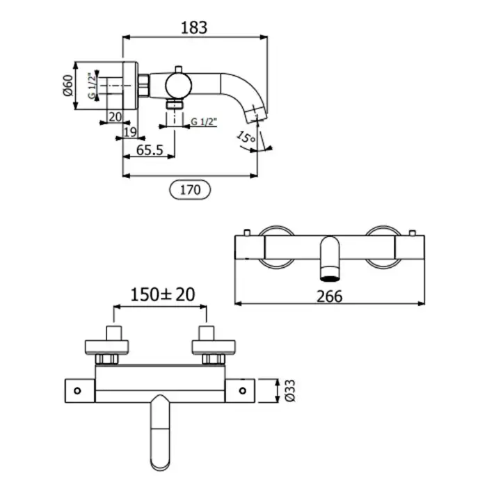 Carimali RIGOLETTOНастенный термостатический смеситель для ванны, 2 потока, латунные ручки