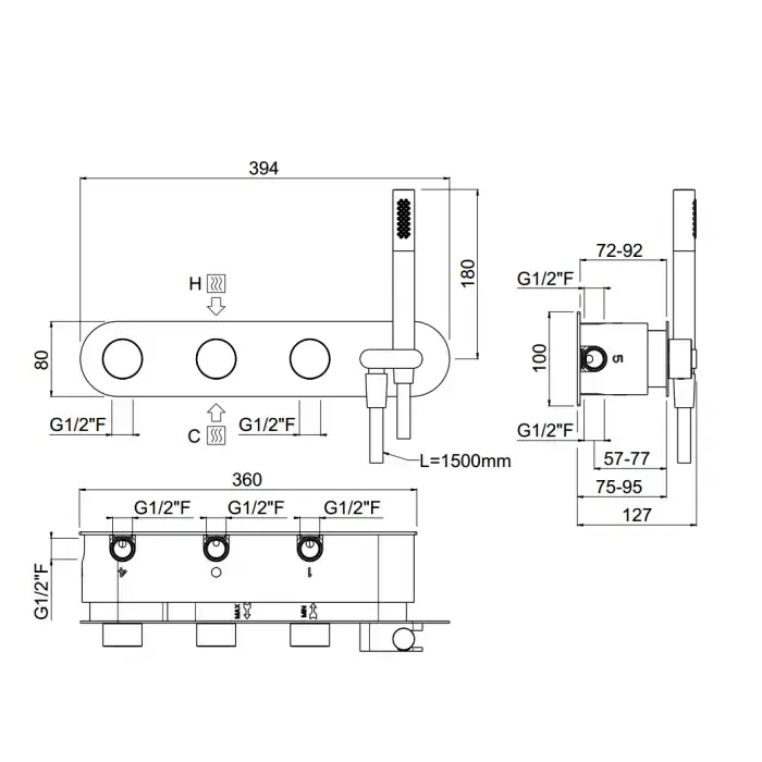 Carimali Встраиваемая часть для горизонтального прогресивного смесителя c держателем для душа, 4 выхода,.цвет: хром