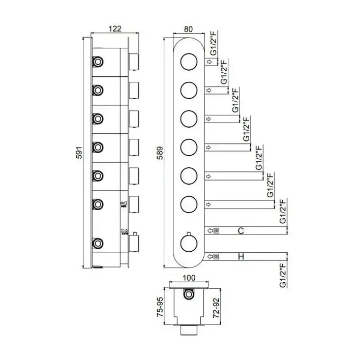Carimali Встраиваемая часть для термостатического смесителя с 6 независимыми выходами