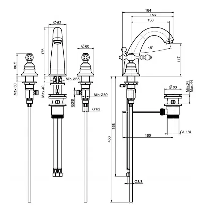 FIMA|Carlo Frattini Epoque Смеситель для раковины, на 3 отверстия, с донным клапаном, цвет хром
