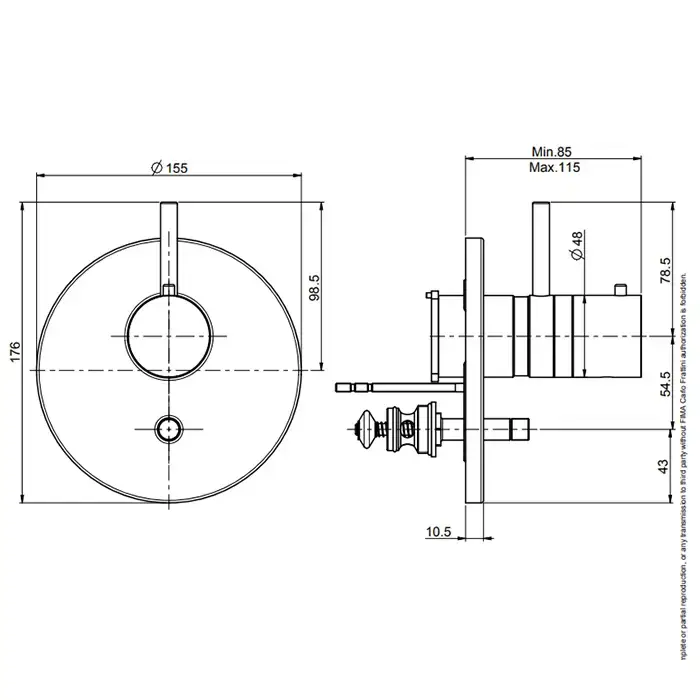 Carlo Frattini Fimatherm Смеситель для душа, встраиваемый, на 2 источника, без внутр. части, цвет: чёрный матовый