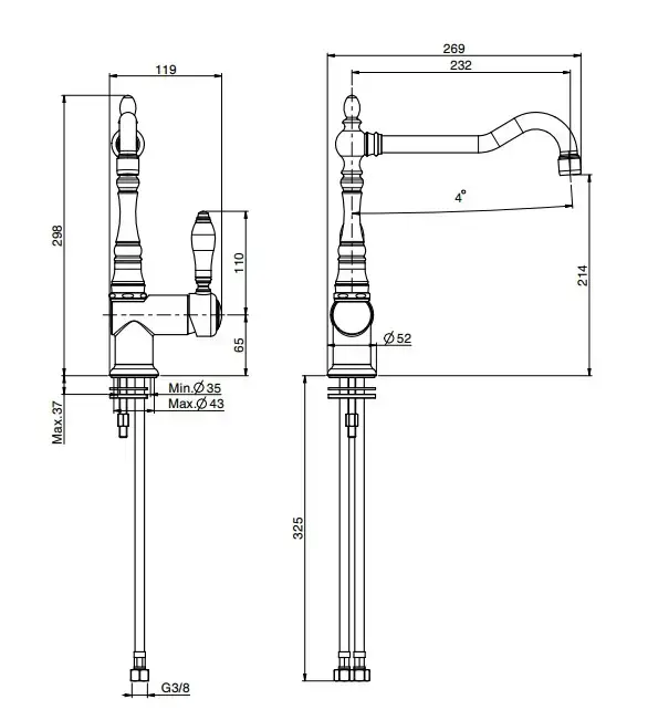 Fima Carlo Frattini Kitchen Смеситель для кухни, на 1 отв., Serie 4, цвет: хром