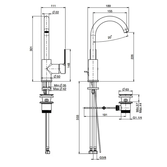 FIMA|Carlo Frattini Mast Смеситель для раковины, вращающийся излив, с донным клапаном, цвет золото