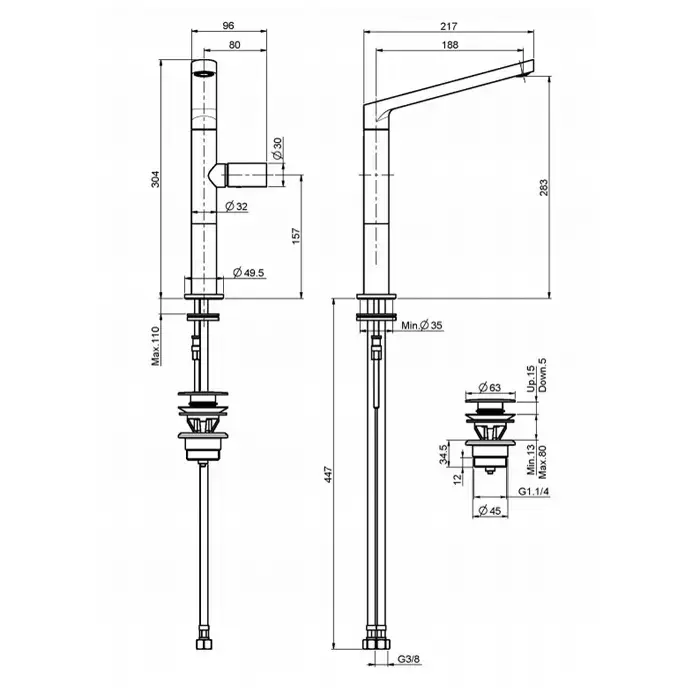 FIMA|Carlo Frattini Nomos go Смеситель для раковины, высота 304 мм., вращающийся излив, с донным клапаном click-clack, цвет хром