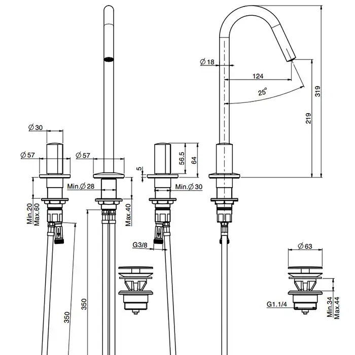FIMA|Carlo Frattini So Смеситель для раковины, на 3 отверстия, высота 319 мм, без ручек, поворотный излив Ø 18мм, донный клапан click-clack, цвет хром