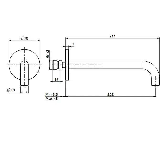 FIMA|Carlo Frattini Spillo Steel Излив настенного монтажа, длина 200 мм., цвет INOX