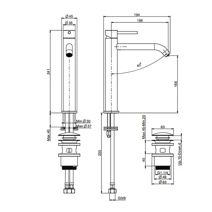 Carlo Frattini Spillo Steel Смеситель для раковины высокий, высота 241 мм., на 1 отверстие, с донным клапаном click-clack, цвет: INOX