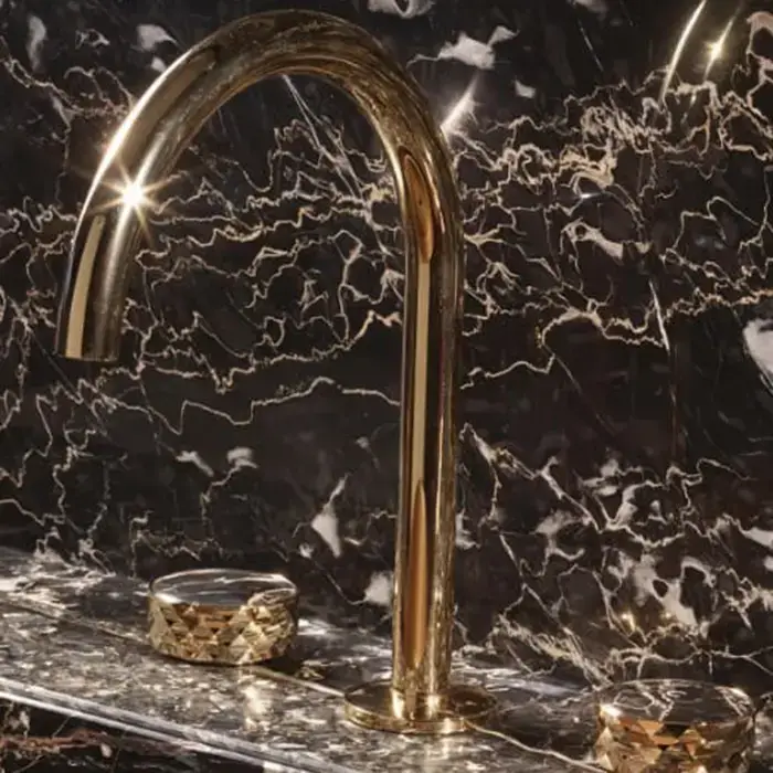 Carlo Frattini Texture Collection Смеситель для раковины, на 3 отверстия, донный клапан click-clack, цвет: золото