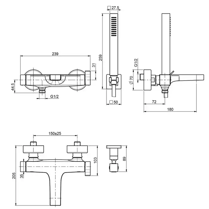 FIMA|Carlo Frattini Zeta Смеситель для ванны внешнего монтажа, с душевым комплектом, цвет хром