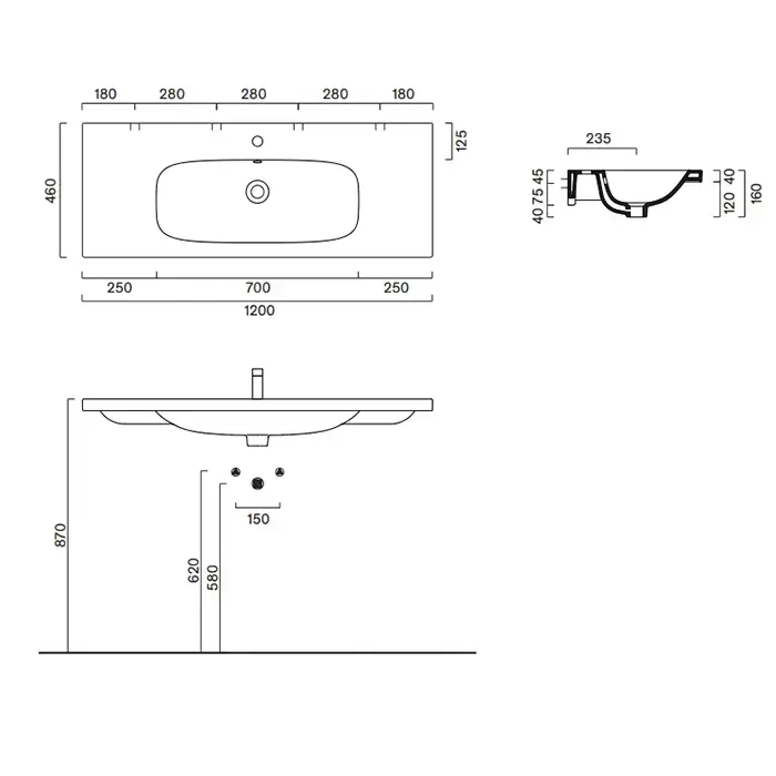 Catalano ALVEA Раковина 120x46, с 1 отв. под смеситель, покрытие Cataglaze+, цвет белый глянцевый