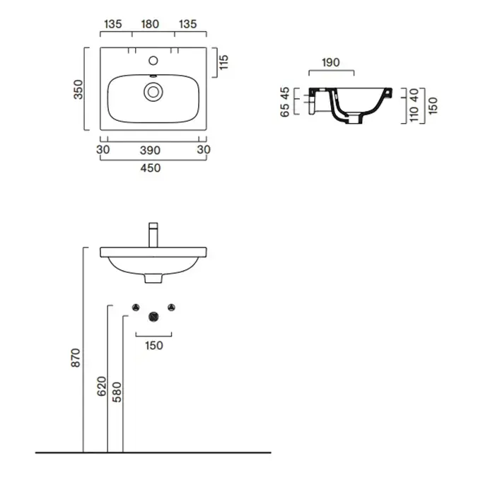 Catalano Alvea Раковина 45х35см., подвесная или на мебель, без отв., цвет: белый глянцевый.