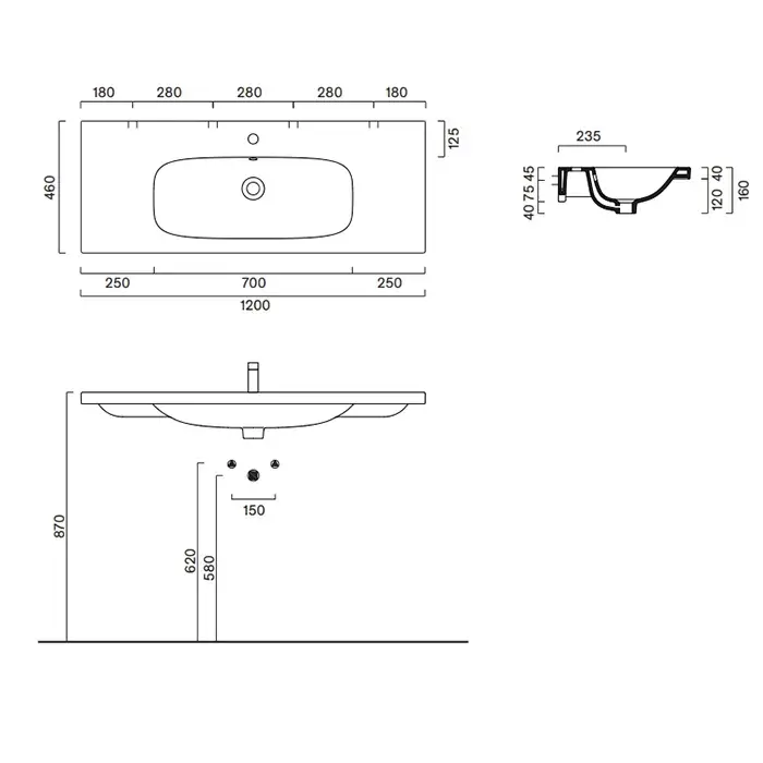 Catalano Alvea Раковина 120x46см, с 1 отв., цвет: белый глянцевый