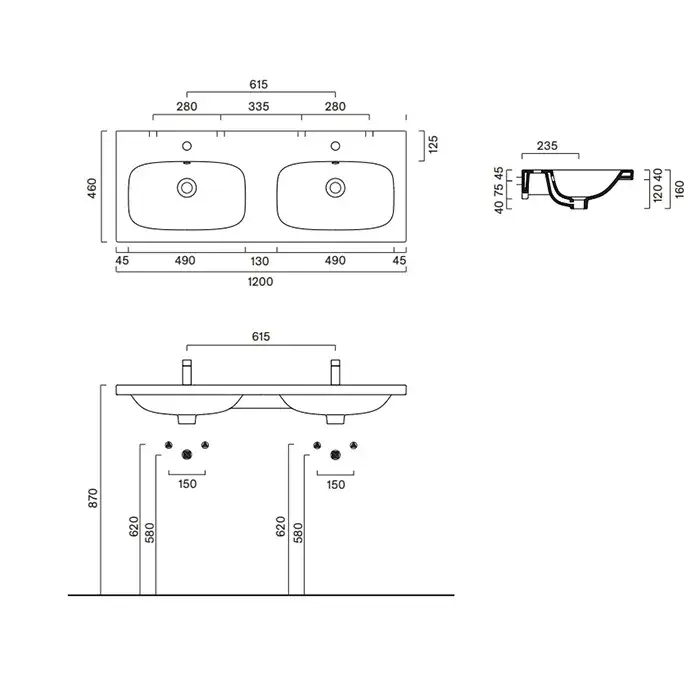 Catalano Alvea Раковина 120x46 двойная, с 2 отв., цвет: белый глянцевый