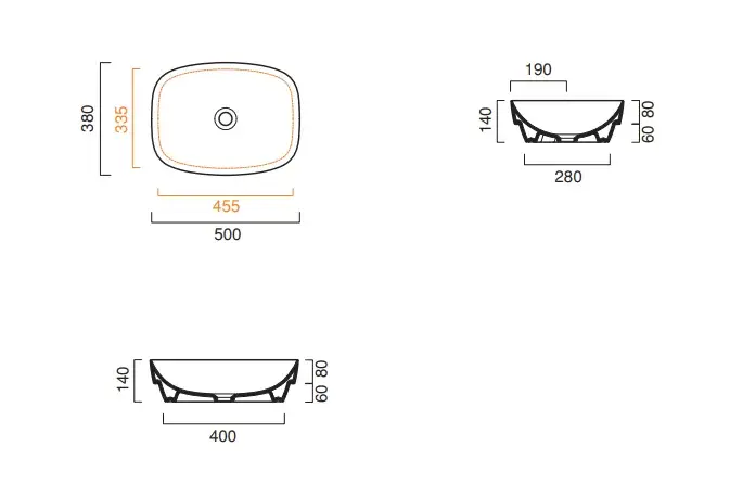 Catalano Alvea Раковина встраиваемая сверху 50x38 см, без перелива, Cataglaze, цвет: черный матовый 0624500022