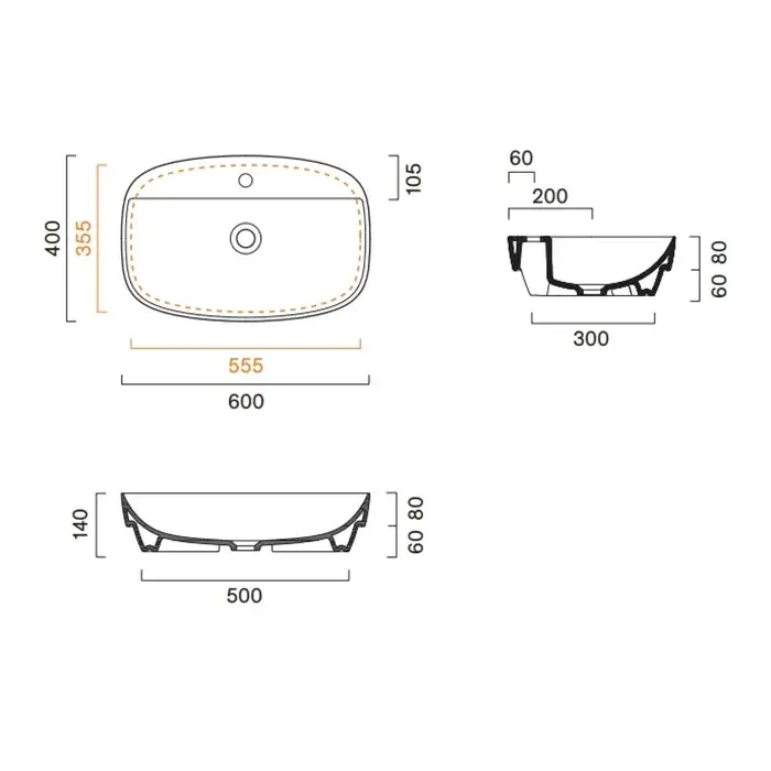 Catalano Alvea Раковина встраиваемая сверху 60x40 см 1 отв без перелива Cataglaze, цвет: sabbia мат. 0625601029