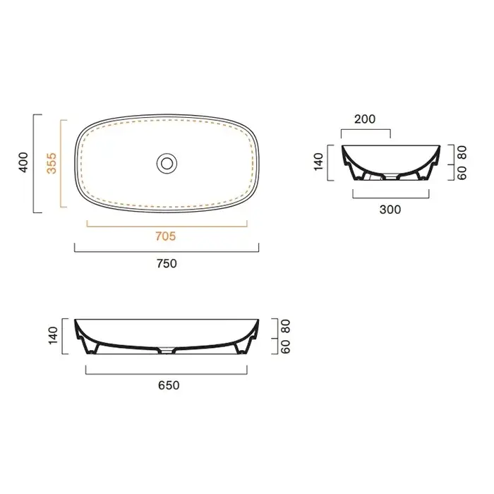 Catalano Alvea Раковина встраиваемая сверху 75x40 см, без перелива, Cataglaze, цвет: sabbia матовый 0624750029