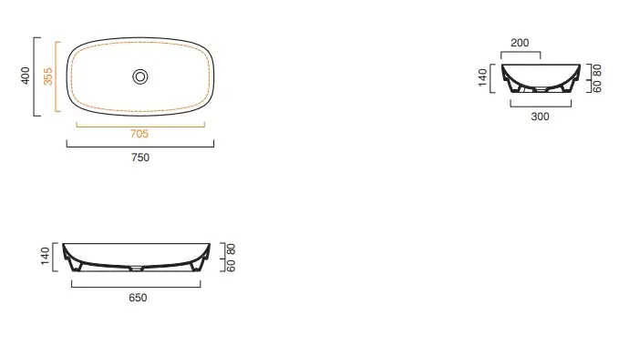 Catalano Alvea Раковина встраиваемая сверху 75x40 см, без перелива, Cataglaze, цвет: черный матовый 0624750022