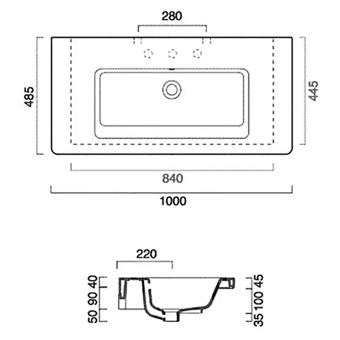 Catalano Comfort Раковина подвесная 100x48x18h см, 1 отв, с переливом, Cataglaze, цвет: белый глянц. 1100LI00