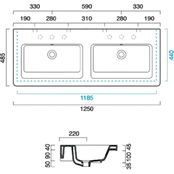 Catalano Comfort Раковина подвесная 125x48x18h см, с переливом, покр. Cataglaze, цвет: белый глянц. 1125LI00
