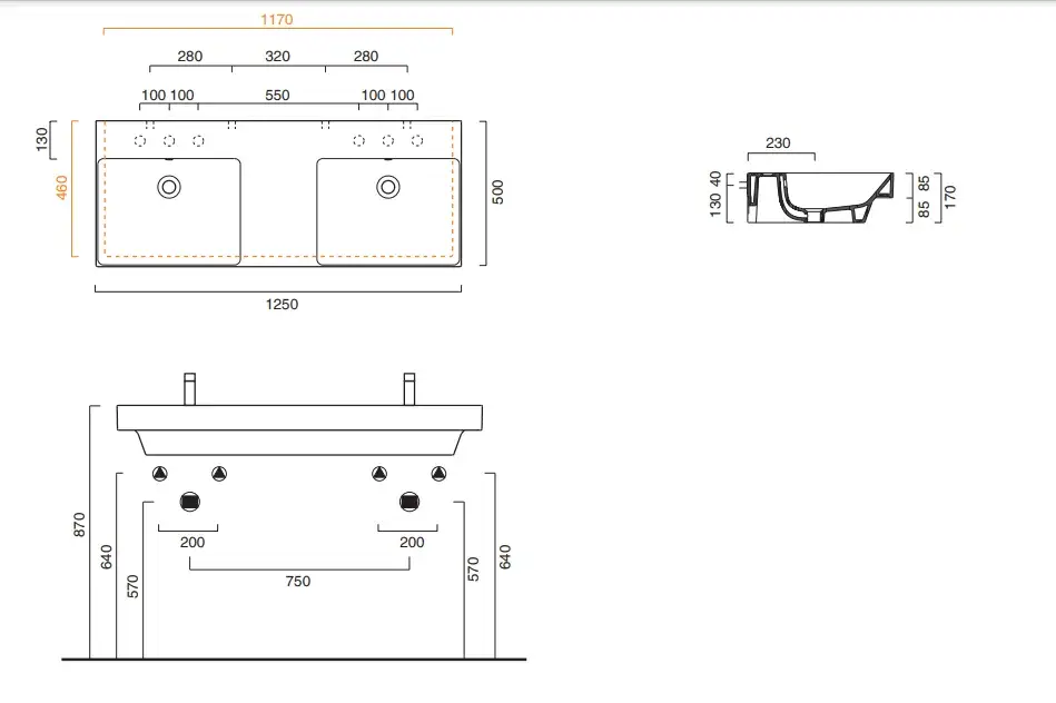 Catalano Comfort Раковина подвесная 125x50x17h см, с переливом, покр. Cataglaze, цвет: белый глянц. 0121270001