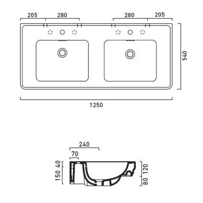 Catalano Comfort Раковина подвесная 125x54x20h см, 1 отв, с переливом, Cataglaze, цвет: белый глянц. 1125CV00