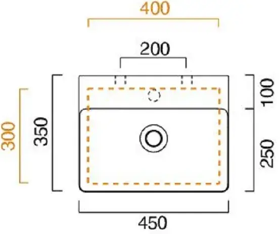 Catalano Comfort Раковина подвесная 45x35x14h см, без перелива, покр. Cataglaze, цвет: белый глянц. 0420450001