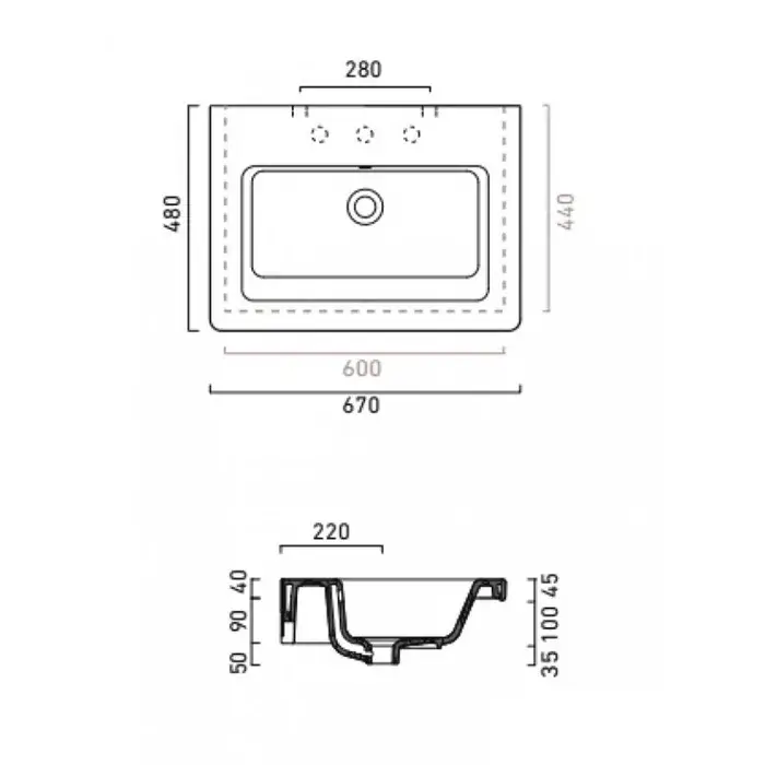 Catalano Comfort Раковина 40x23см, без отв., цвет: белый глянцевый