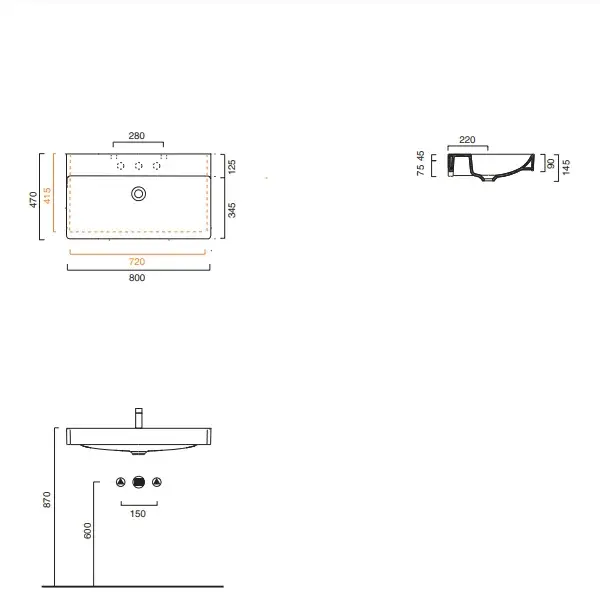 Catalano Comfort Раковина подвесная 80x47x14,5h см, без перелива, покр. Cataglaze цвет: белый глянц. 0420800001