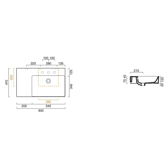 Catalano Comfort Раковина подвесная 80x47x15,5h см, с переливом, покр. Cataglaze, цвет: белый глянц. 0220830001