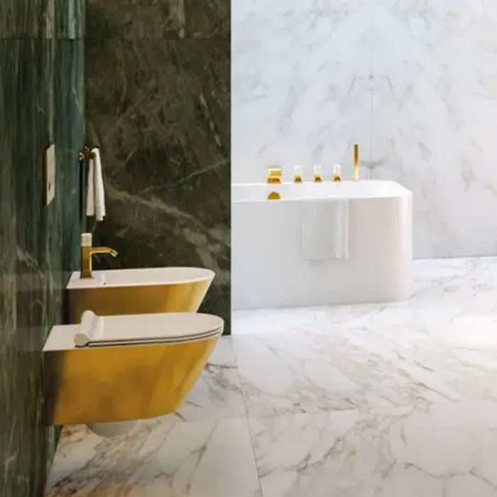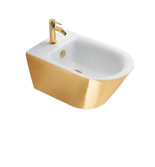 Catalano Gold & Silver Биде подвесное 35x55 см 1 отв перелив Cataglaze, цвет: золото/белый глянцевый 0118551042