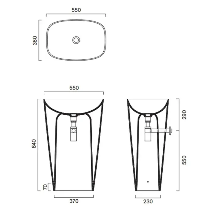 Catalano GREEN Раковина 55x38 h85 свободностоящая, без отв. под смеситель, покрытие Cataglaze+, слив в стену , цвет белый глянцевый